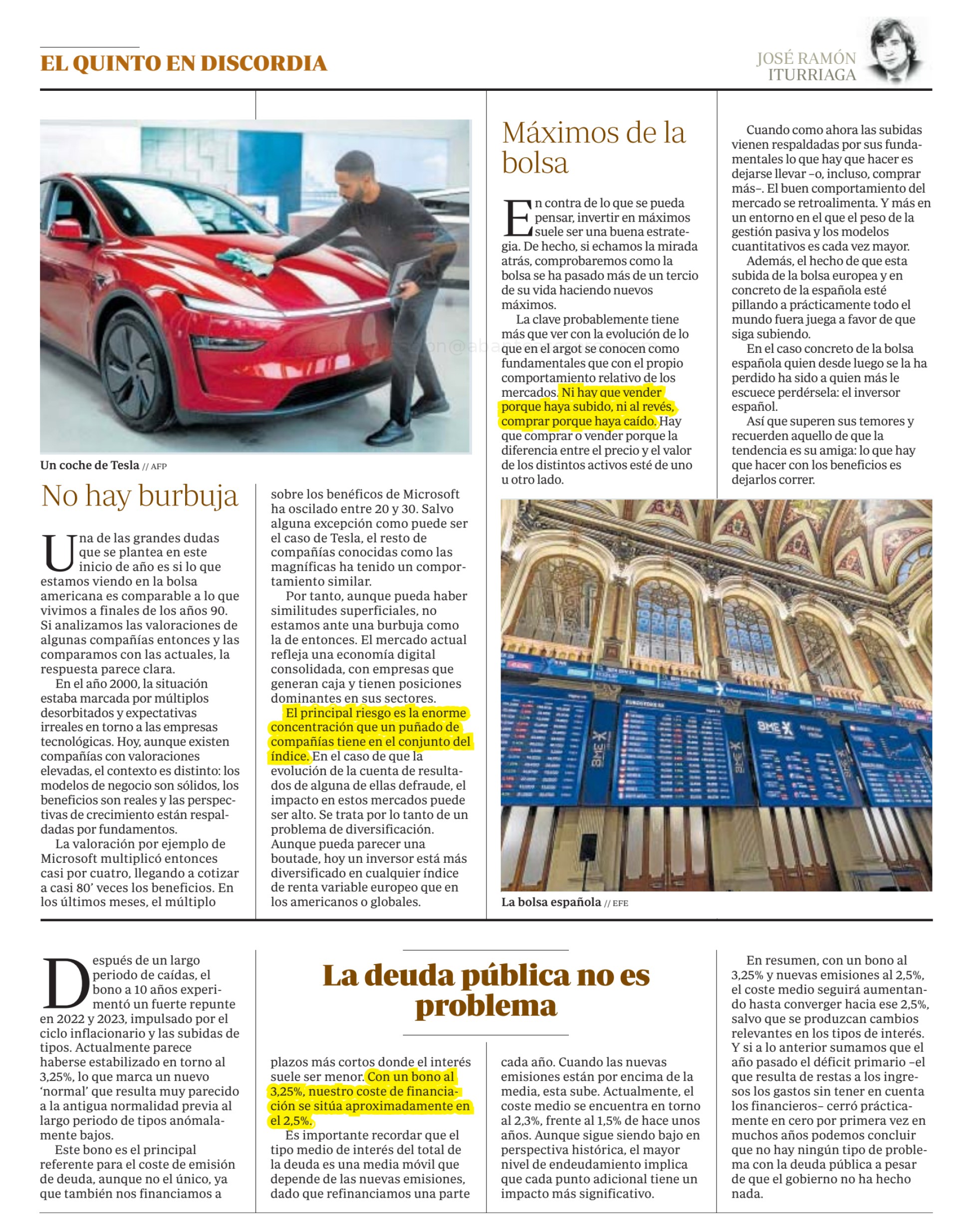 José Ramón Iturriaga, socio y gestor de fondos en Abante, escribe en El quinto en discordia en ABC: «No hay burbuja», «Máximos de la bolsa» y «La deuda pública no es el problema».